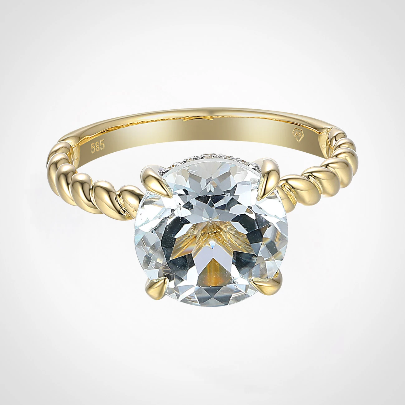 Pierścionek z żółtego złota z białym topazem