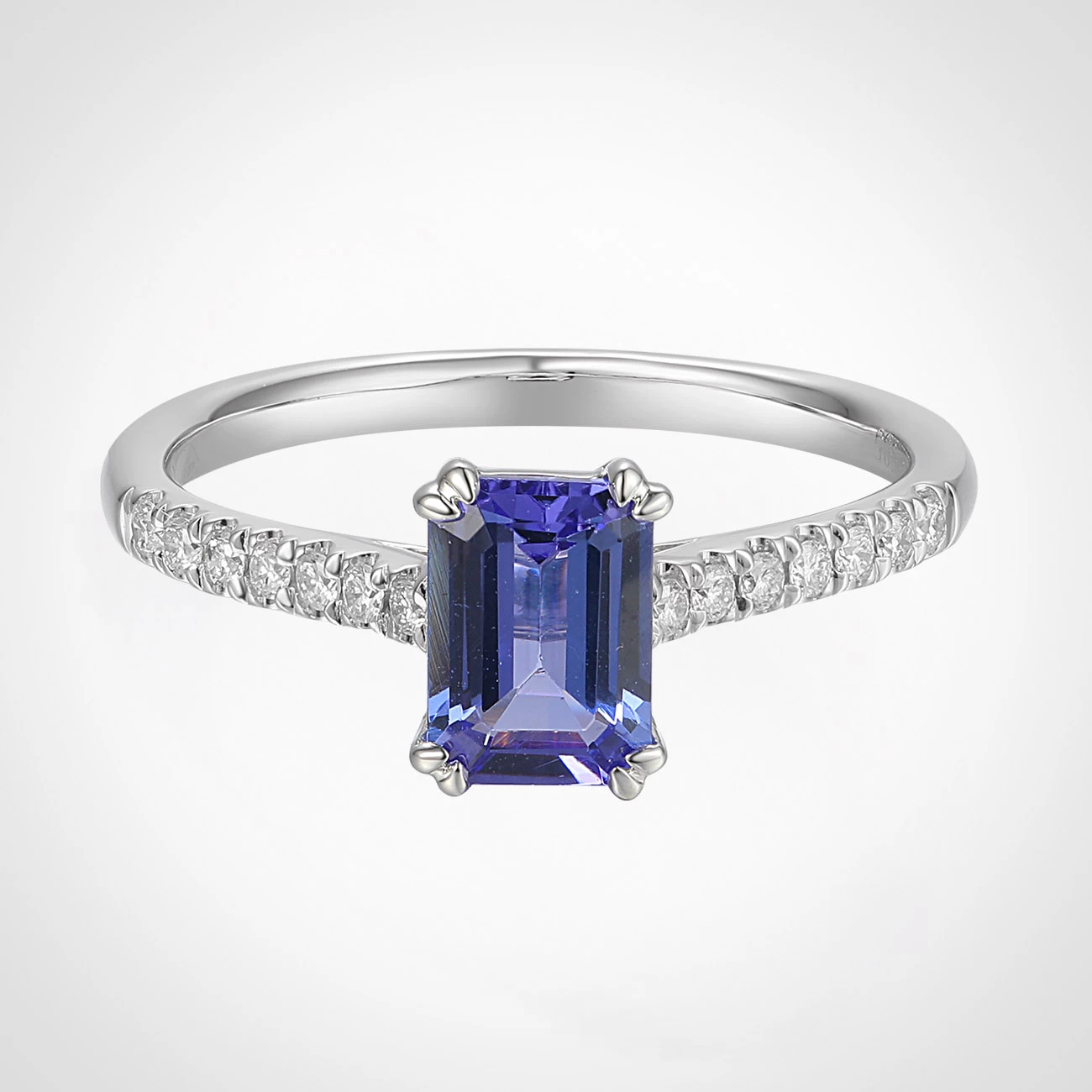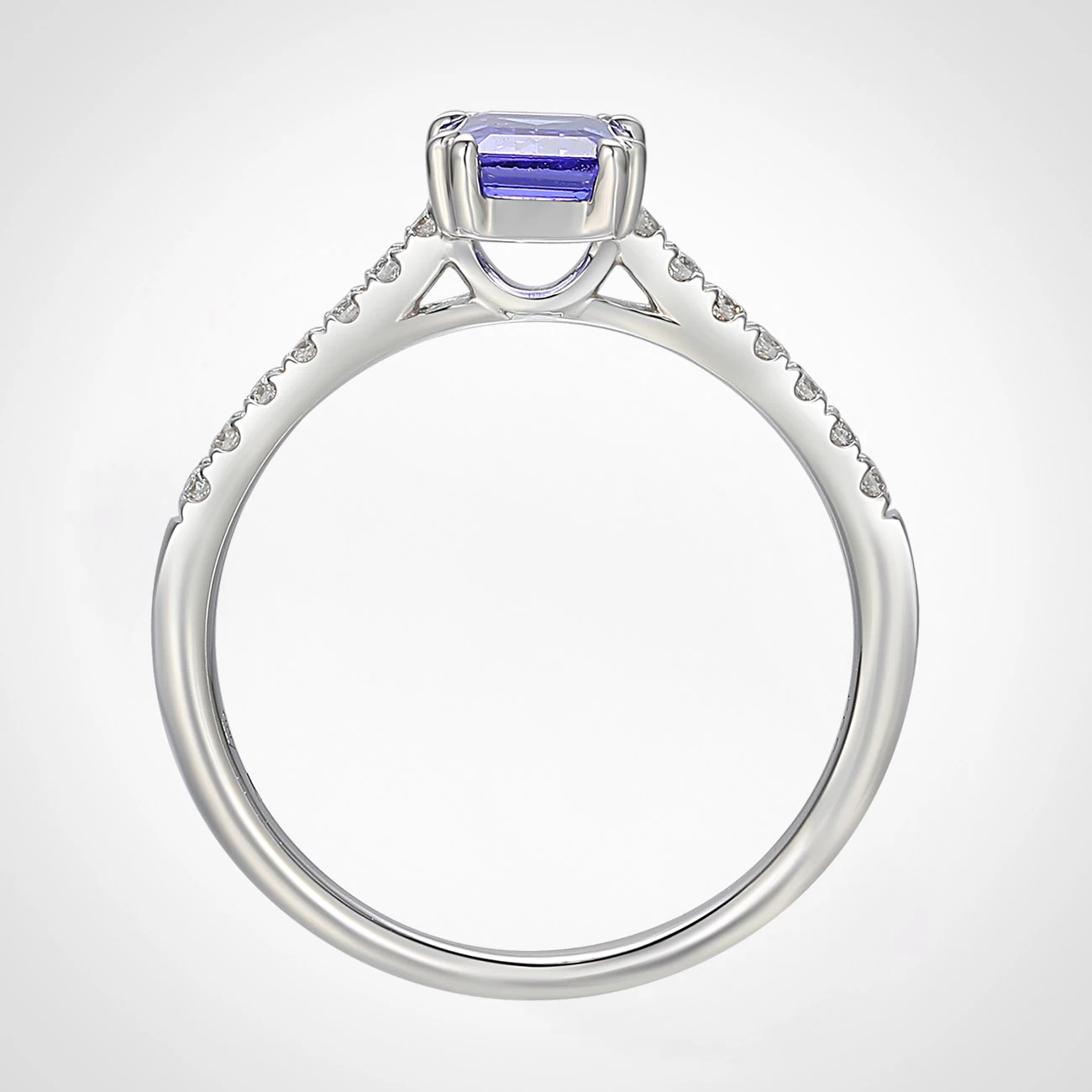 Pierścionek z białego złota z tanzanitem i diamentami po bokach