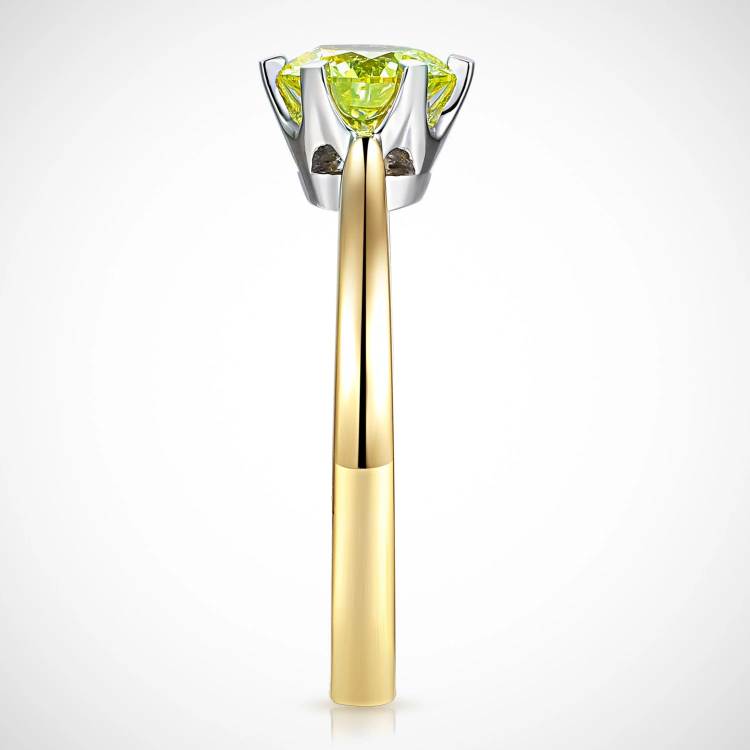 Pierścionek z limonkowym diamentem laboratoryjnym w klasycznej oprawie sześcioramiennej