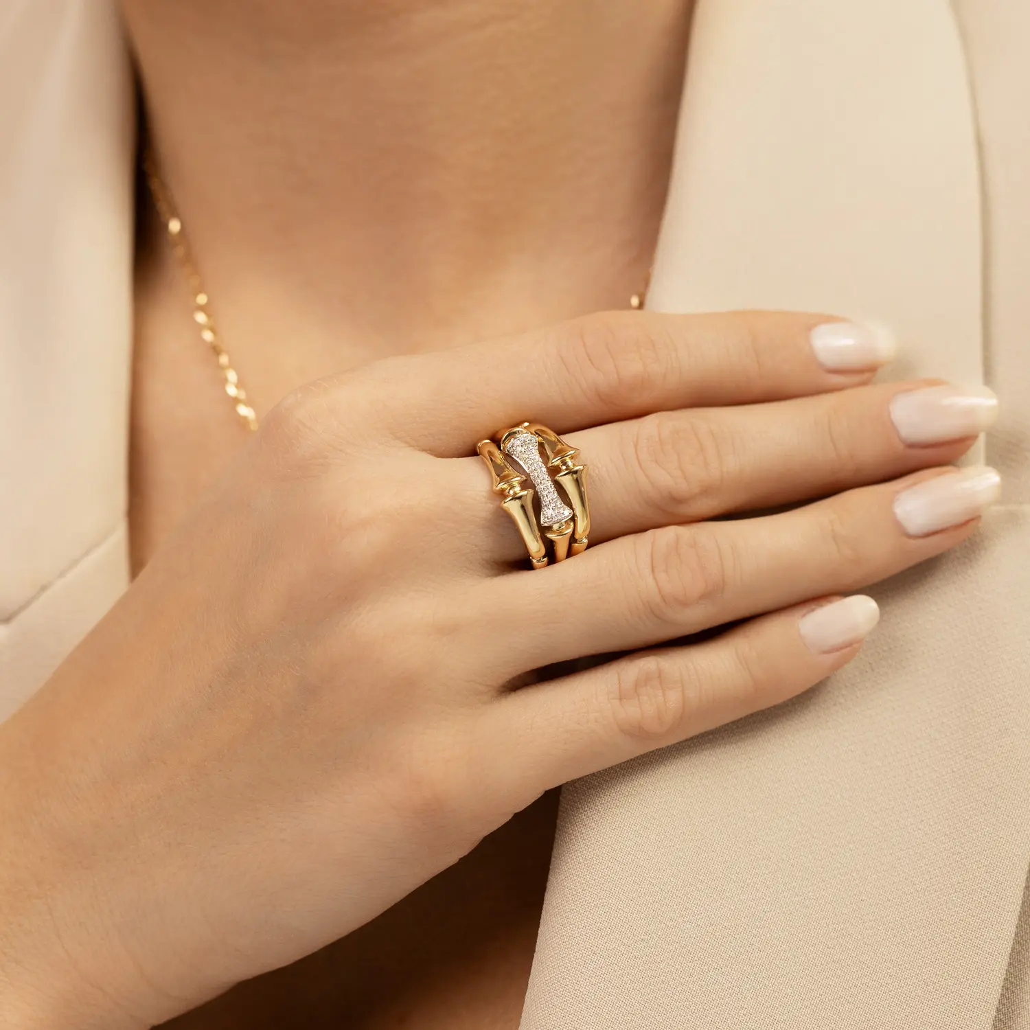 Pierścionek złoty z diamentami inspirowany morficznym i kształtami